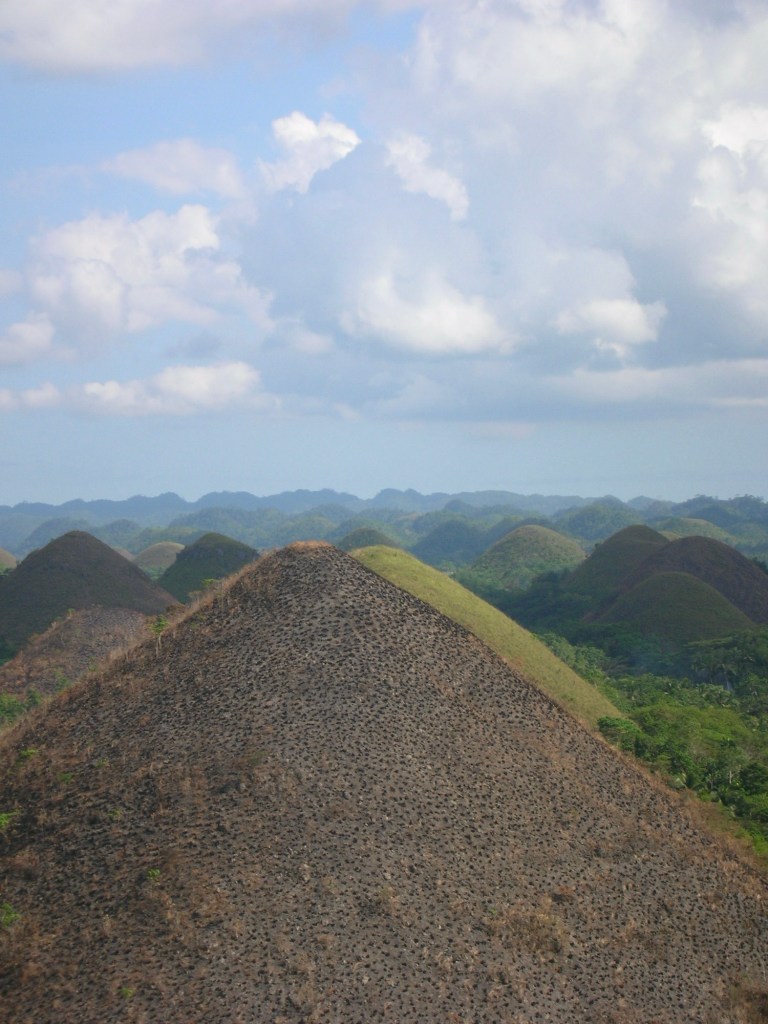 Nous avons eu, une fois de plus, l’occasion de louer une petite mobylette pour rouler sur les routes de l’île de Bohol pour y découvrir les montagnes énigmatiques des Chocolate Hills, nommées ainsi par la couleurs que leurs donne la saison sèche!!!