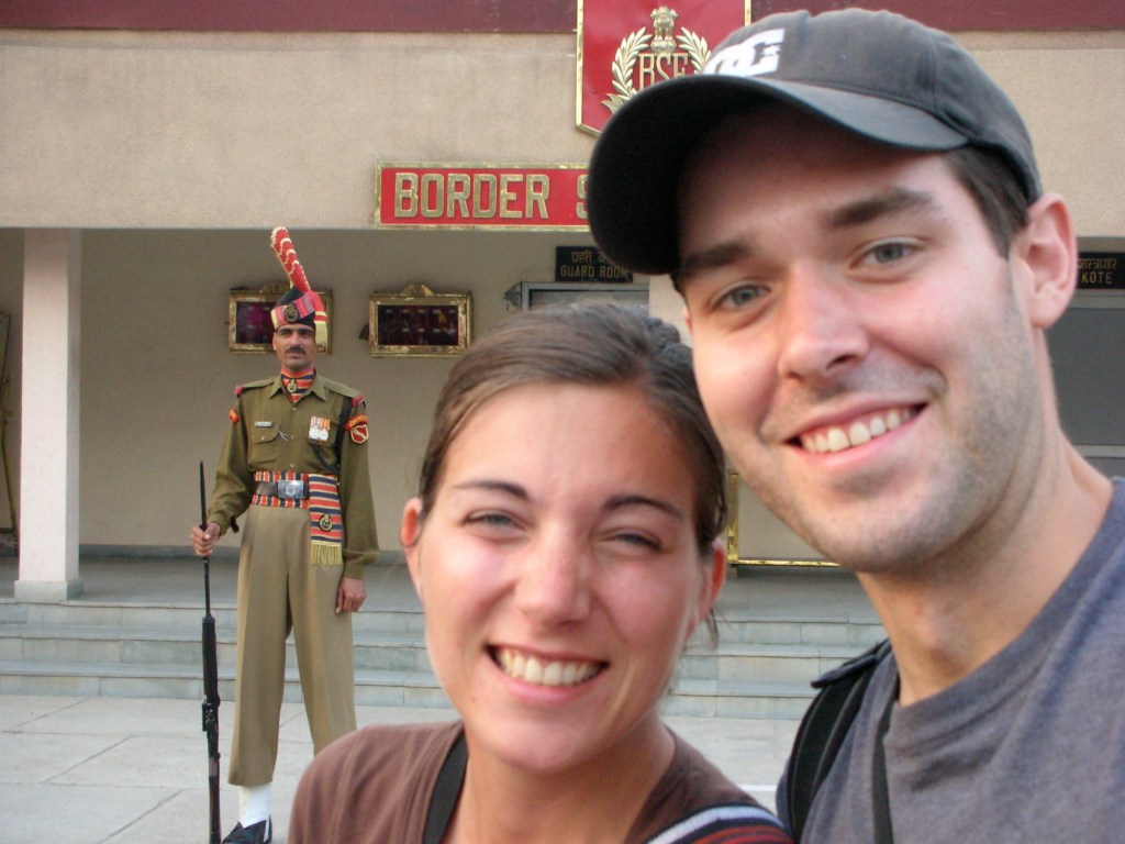Amritsar, terre des sikhs, n’a pas grand chose à offrir si ce n’est de son Temple d’Or et de la fermeture de la frontière entre le l’Inde et le Pakistan, qui a lieu chaque soir à quelques kilomètres de la ville. Il est un peu plus de 14h30 lorsque nous posons pieds à Amritsar. C’est pas le temps de chômer!!! Nous trouvons d’abord refuge pour la nuit, achetons quelques « samosa » à un marchand du coin et rapidement, nous sautons dans le premier rickshaw! Vite, vite, nous avons 1 heure de route à faire pour se rendre à Attari, où a lieu la fameuse fermeture de la frontière.