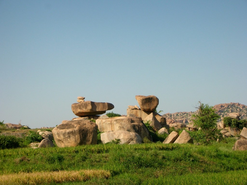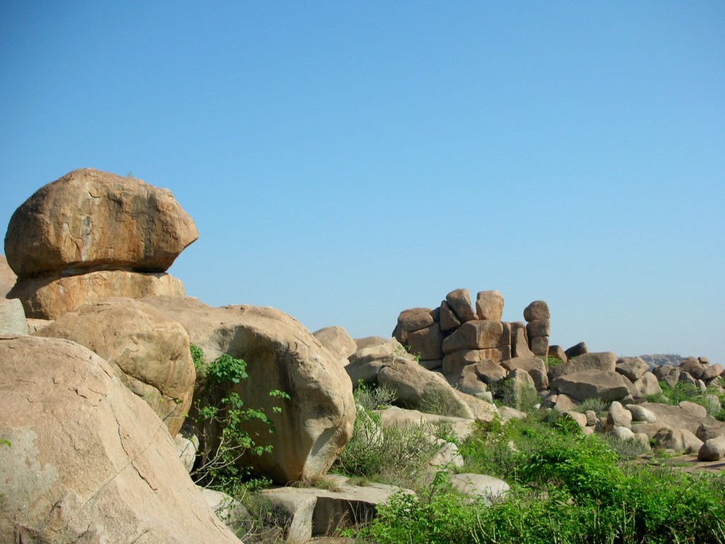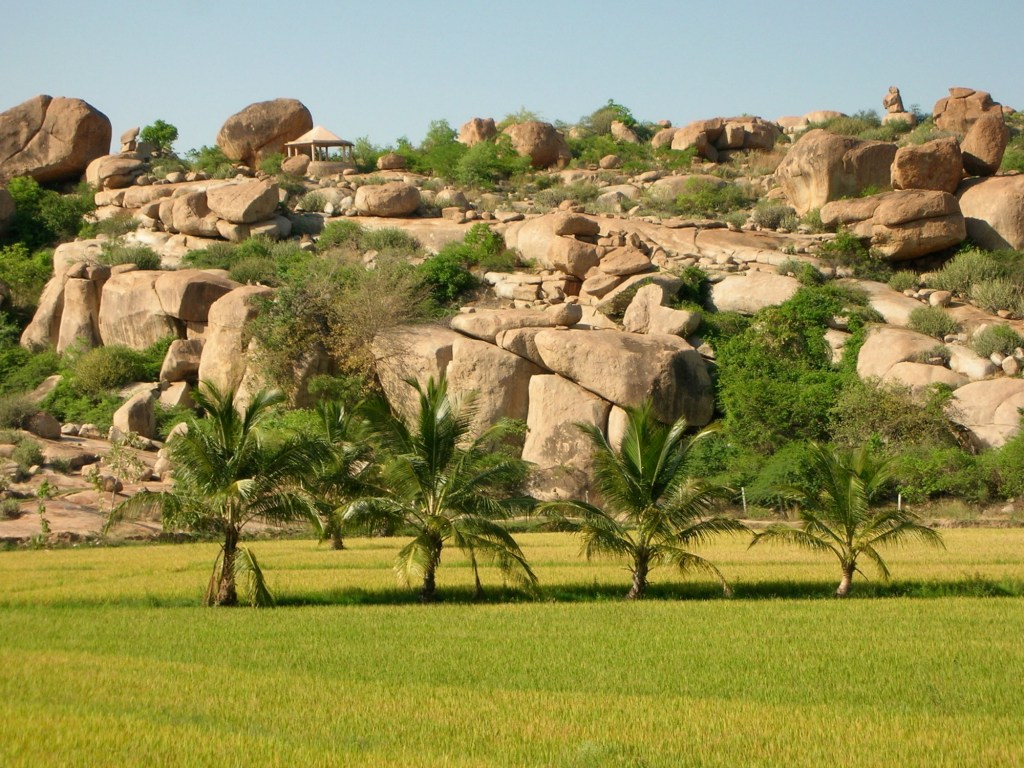 Outre les ruines de Vijyanagar, civilisation prospère du 14ième siècle, le paysage verdoyant de palmiers et de manguiers est parsemé de monolithes aux allures intrigantes.
