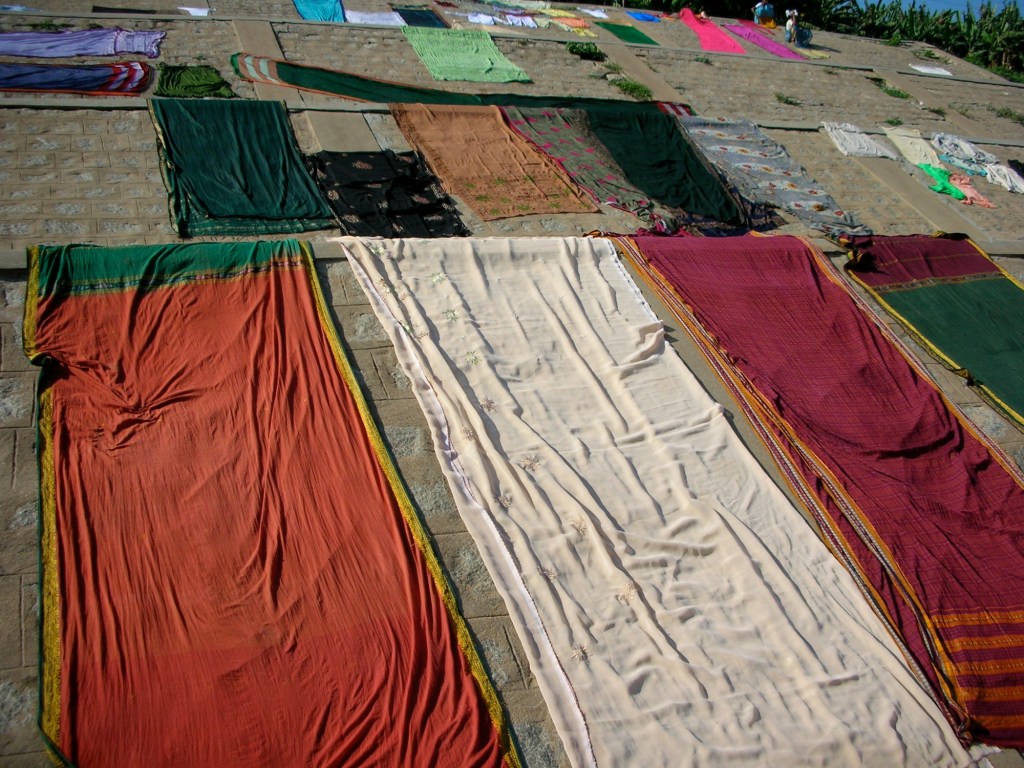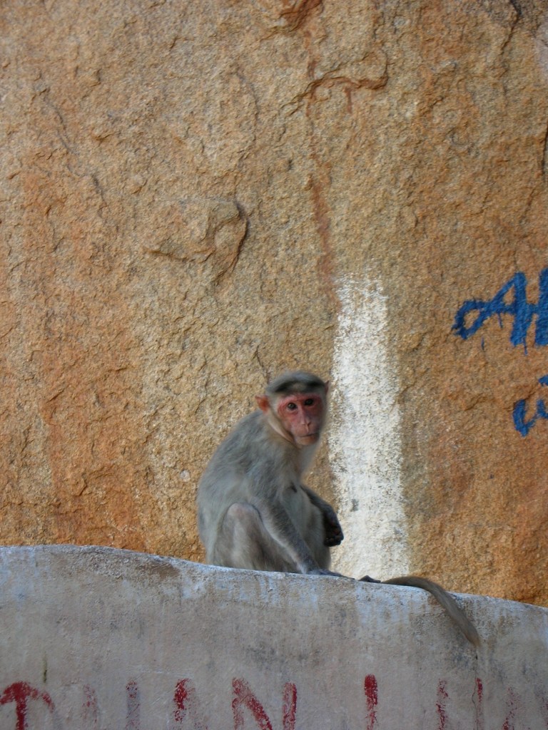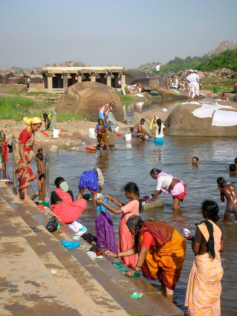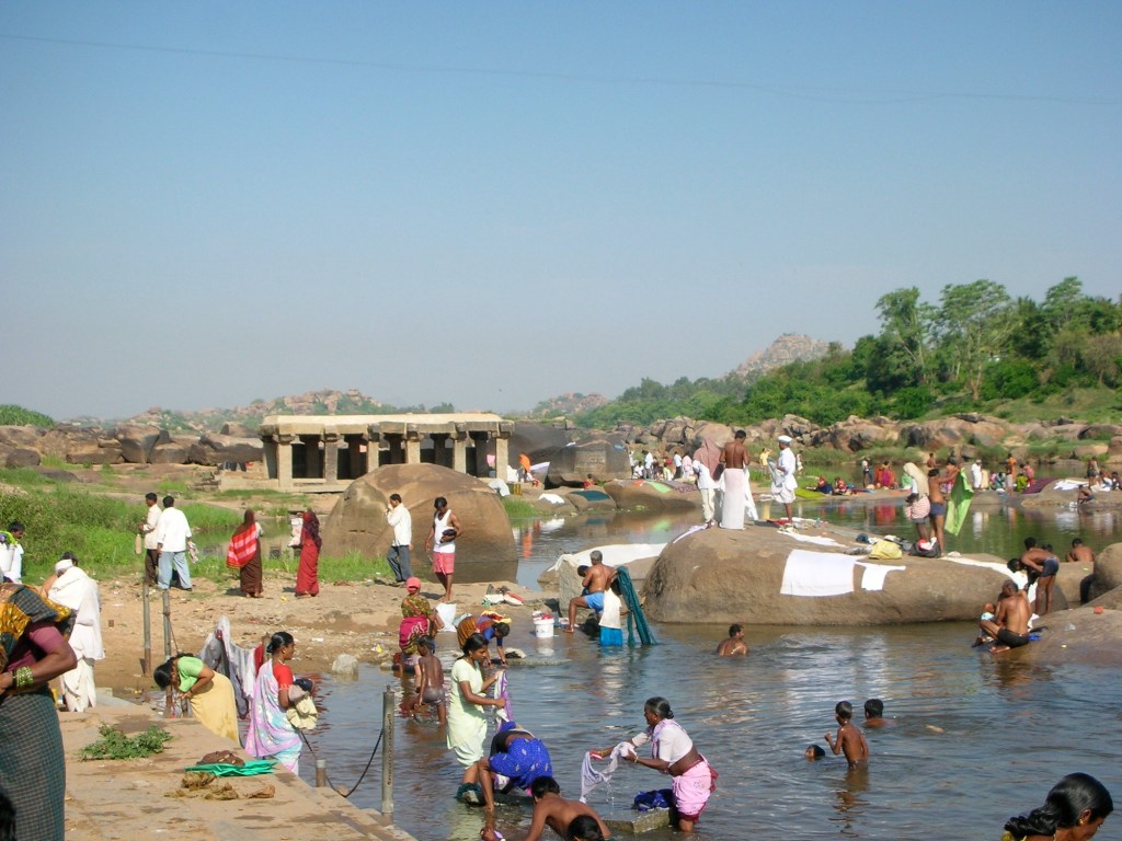 Ce sont ces kilomètres et ces tonnes de pierres gigantesques empilées les unes sur les autres défiants la gravité qui volent, à nos yeux, la vedette. Une ballade à moto sur les routes sinueuses et désertes de Hampi donne l’étrange impression d’avoir franchit la porte magique d’Alice aux Pays des merveilles. Pas surprenant qu’un endroit aussi particulier soit sacré aux yeux des indiens. La centaine de gens qui viennent se purifier à chaque matin au pied des ghats dans la rivière qui serpente à travers les ruines et le village confirment que nous sommes toujours sur le sous-continent indien.