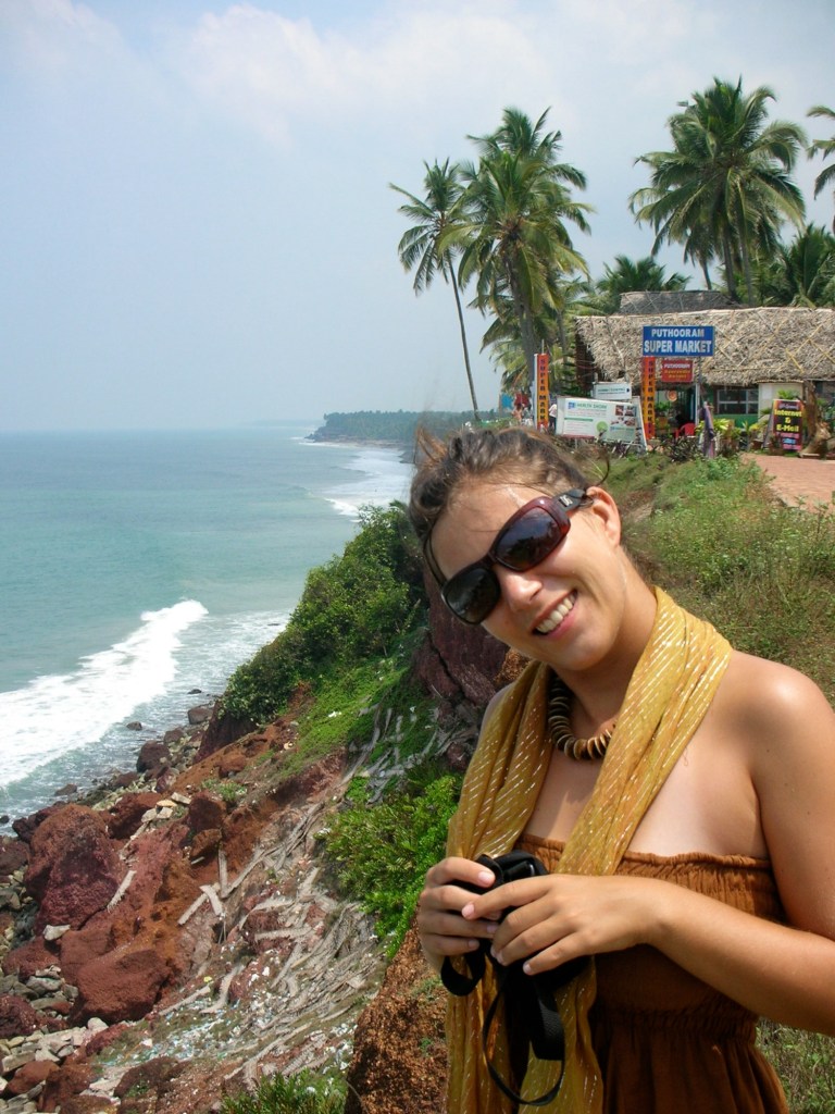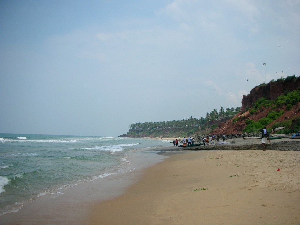 Varkala, station balnéaire située au sud-ouest de l’Inde, se démarque par sa falaise de pierre rouge qui surplombe l’océan Indien. L’activité se concentre principalement à même la falaise, avec une petite piste piétonnière qui chemine sur son flanc, avec en arrière plan, une multitude de boutiques, guesthouses et restaurants, tous au toit de chaume.