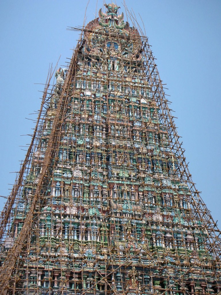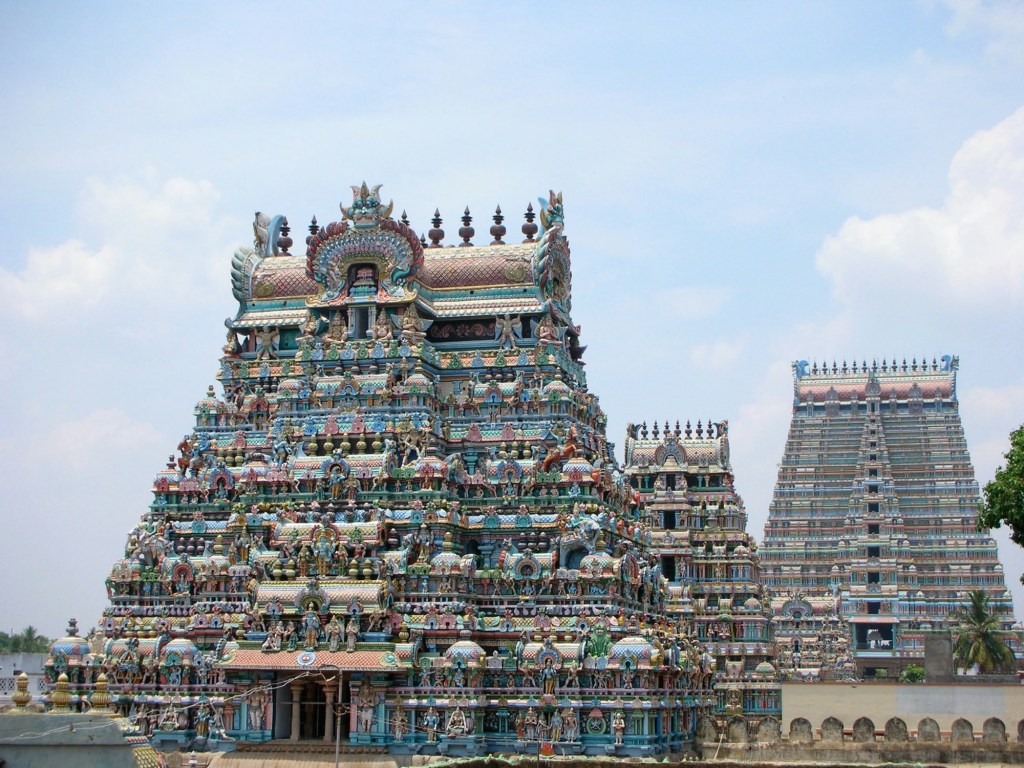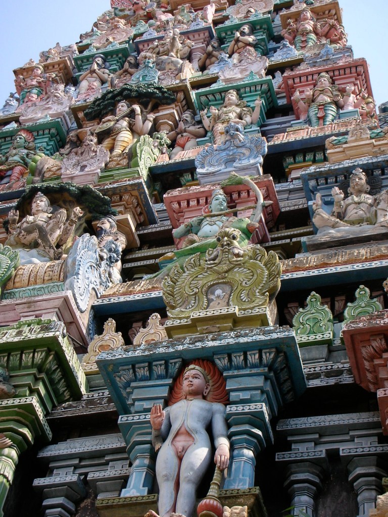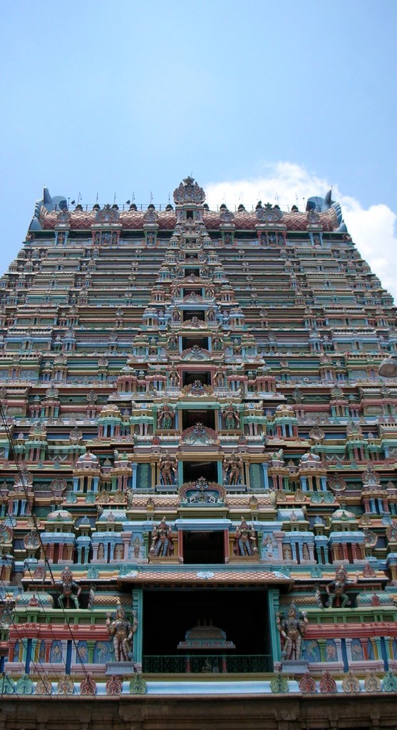 Gopuram: Tour ornementée à l’entrée des temples hindous.