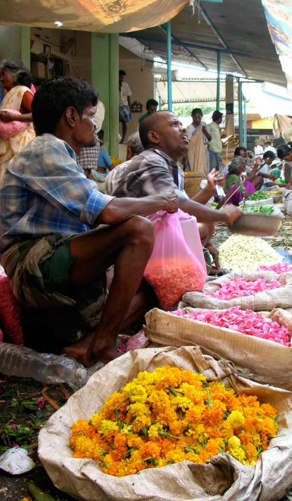Nous en profitons pour apprécier la sérénité qui règne à l’intérieur des murs du Sri Meenaskshi, partons à la découverte du marché de fleurs et nous dénichons un bon resto pour amorcer un « blitz » final de spécialités indiennes: palak paneer, paneer butter masala, chiken tandoori, cheese naan, riz biryani, etc…