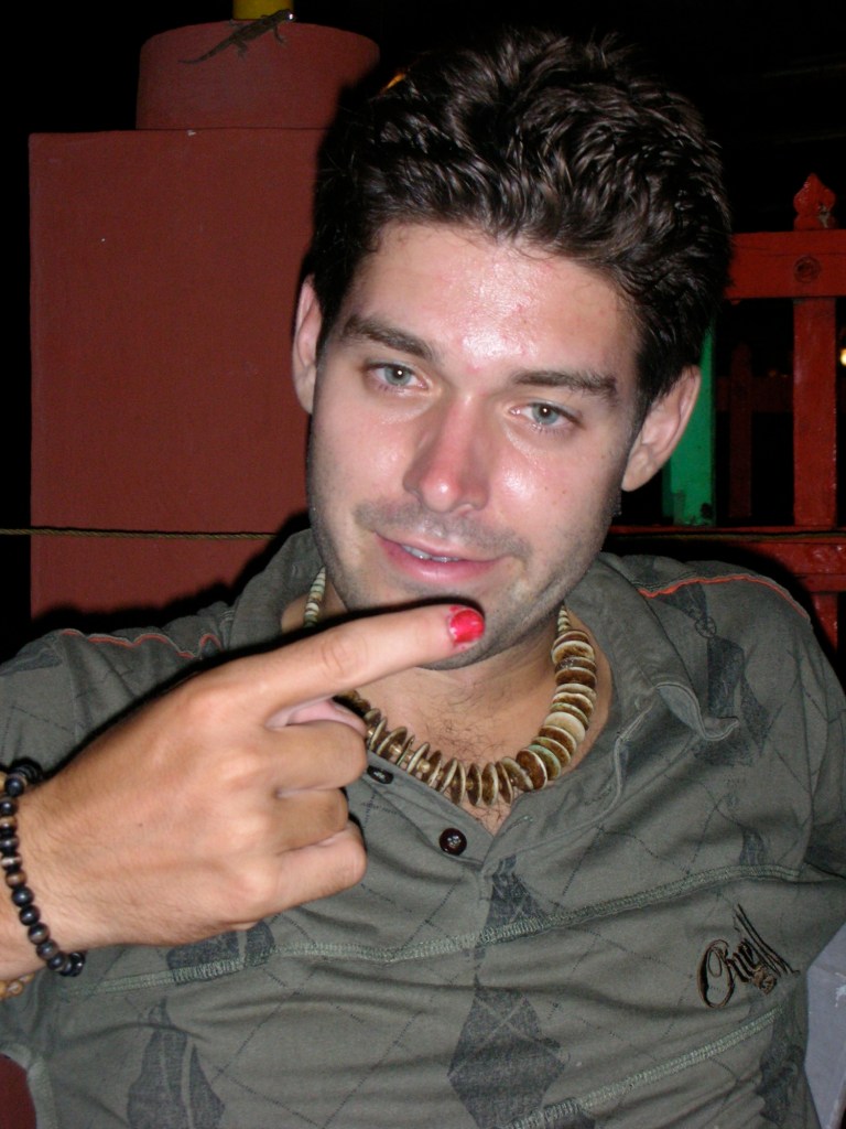 Comme prévu, nous arrivons à la modeste demeure les bras charges de riz, savon, dentifrice, bananes, melon et biscuits (au chocolat bien sur!!!), mais aussitôt les enfants nous libèrent de tous les vivres. Nous passons l’après-midi à jouer, danser, se faire écrire au feutre les noms des jeunes dans la paume de la main et nous avons également droit à un fabuleux manucure rose « nanane », qui va soit dit en passant à merveille à Sebast!!!