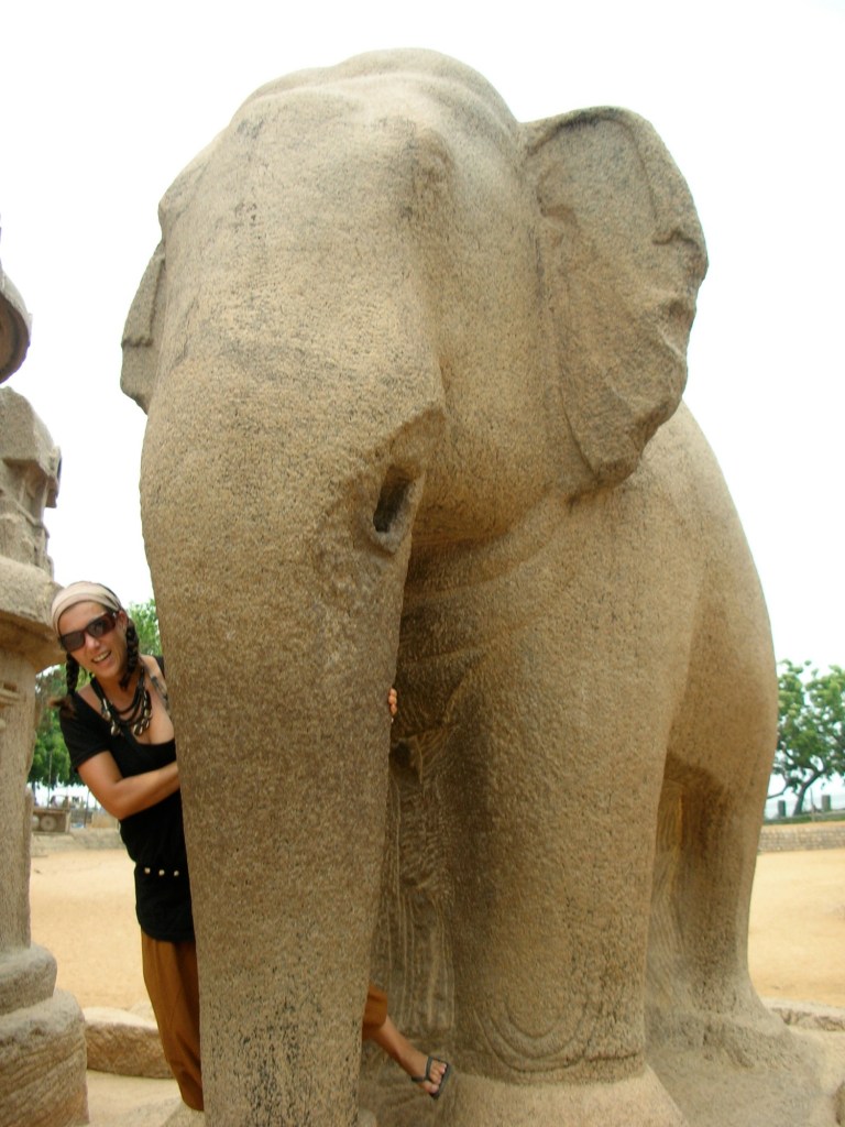 Mamallapuram, la dernière de toutes avant de quitter définitivement l’Inde, est la seule réelle enclave à touristes du Tamil Nadu. C’est donc, après des centaines de regards subjugués durant notre traversée d’ouest en est du Tamil Nadu, que nous mettons pied la où personne ou presque, semble remarquer notre présence (Dieu merci!). Premier reflexe, se rendre au bord de la mer, cette fois-ci, du nom de Baie du Bengale. La mer nous offre toujours le luxe d’une agréable brise qui asséché quelque peu notre peau qui n’en finit plus de dégoutter! On en profite pour faire une coupe de cheveux et des tattoo temporaires.