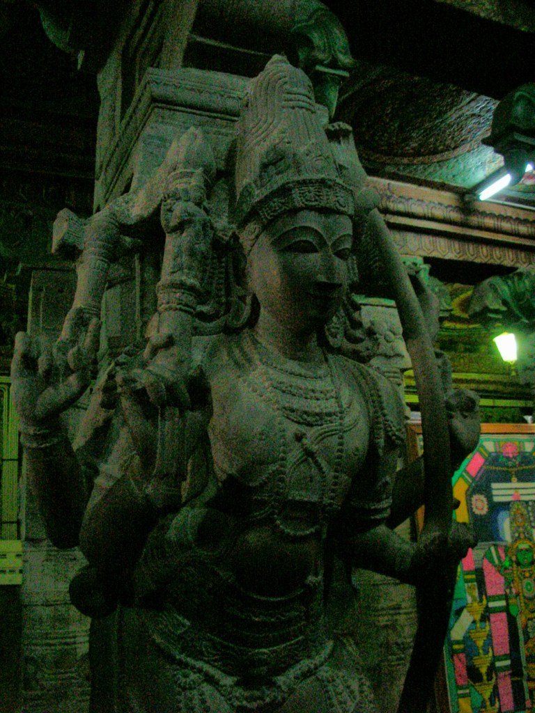 Vite, vite le temps file, nous sautons dans un train direction Trichy. La ville est plutot sans interet pour le touriste occidental, mais les 21 gopurams de la ville n’ont rien a envier à Madurai, excepte peut être, son achalandage et sa popularité. Un bref arrêt qui nous permet de faire les clichés qu’il fut impossible de réaliser étant donné la restauration des milliers de détails des temples de Madurai.