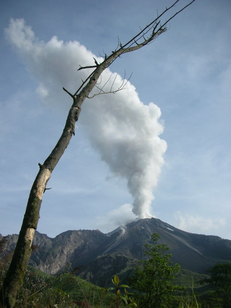 Arrivés au camp de base, nous demandons à Charlie où est le champagne et d’un sourire en coin, il nous répond que nous devrons se contenter d’un bon thé chaud… c’est permis d’espérer, hihihi!!! Nous trinquons volontier avec nos tasses de plastique, encore trempés comme une bande de canards. La soirée se déroule parfaitement, malgré que Santaguito ne se montre pas. Son cri se fait retentir régulièrement tout au long de la nuit. Dodo temprano* pour toute l’équipe qui est tout de même un peu décue par la gêne du géant qui reste constamment camoufflé derrière le rideau de fumée. Surtout qu’il était la cause première de notre ascension et qu’il fût la source de notre motivation durant l’expédition.