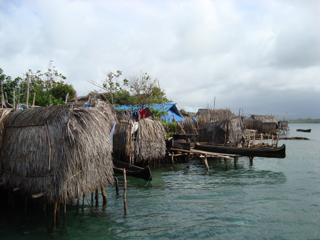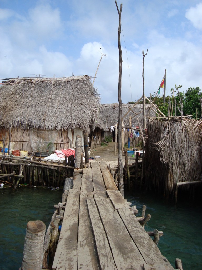 Et oui, c’est rempli d’espoir que nous quittons la capitale, à bord d’un 4×4 à la découverte du paradis sur terre et des Kuna yala, propriétaires de ce petit coin éloigné du Panama. Le chemin de 3 heures est époustoufflant! Il n’y a pas de réel accès routier pour se rendre à San blas (la majorité des touristes s’y rendent en avion)… d’où l’extrême importance du 4×4! Nous cheminons dans des routes de boue, traversons des rivières, bref l’expérience est captivantes, ici, au frontière du Darien* dans cette forêt primaire. Nous arrivons sur la berge avec l’estomac qui cabriole, mais ce n’est pas terminé. Nous embarquons dans une chaloupe à moteur et défions la mer agîtée et arrivons sur notre île d’hébergement, tout à fait trempés, mais surexcités d’arriver à destination! Il n’y a aucune plage sur cette île et de toute façon, personne n’a envie de s’y tremper les orteils, voyant que les toilettes sont en réalité un simple trou dans le planché juste au dessus de la mer! Donc, tous les touristes et les habitants (aussi nombreux soient-ils) déchargent dans cette fabuleuse eau cristalline qui en fait un vrai festin pour les poissons… probablement les seuls à y voir un intérêt!!!