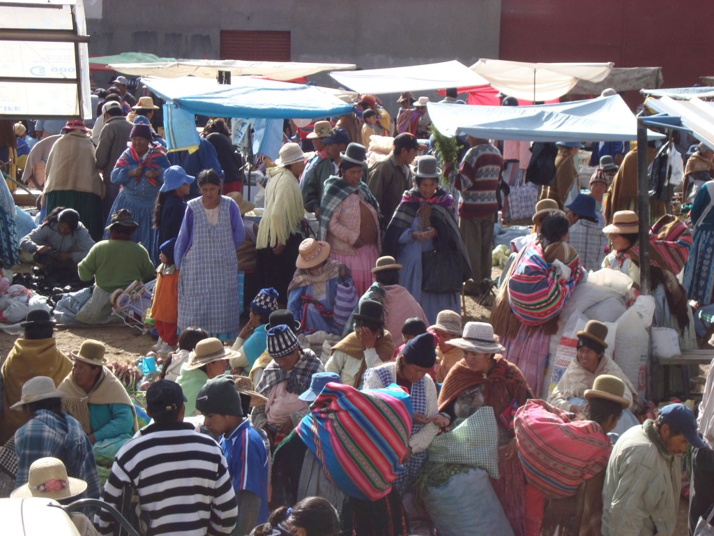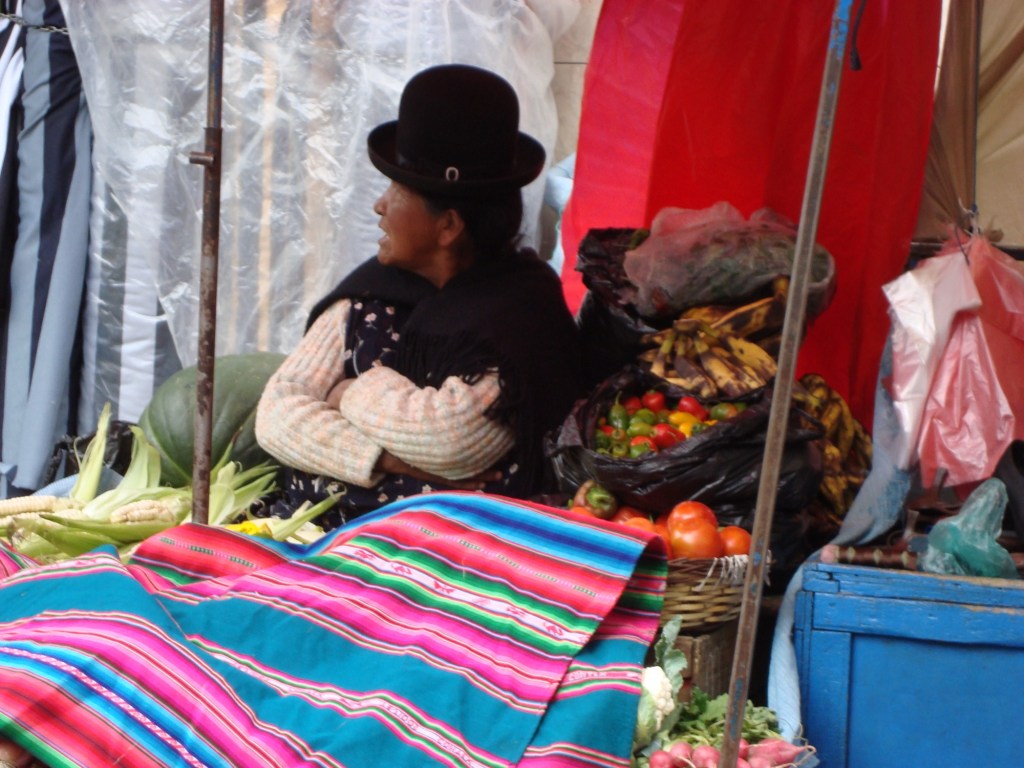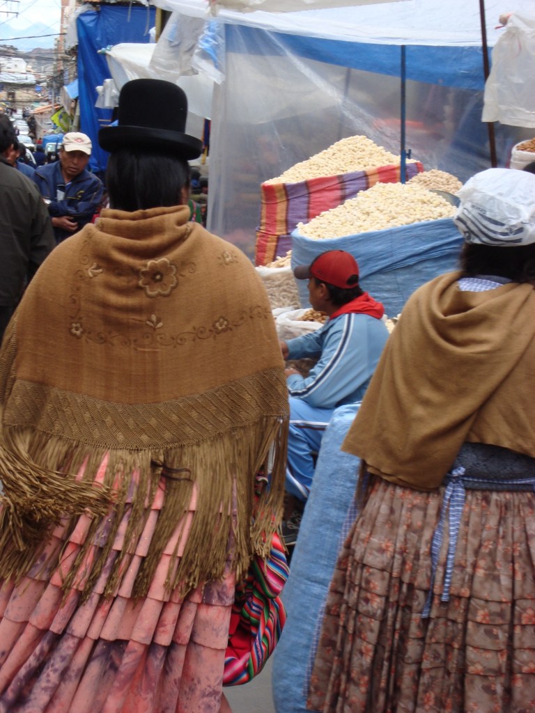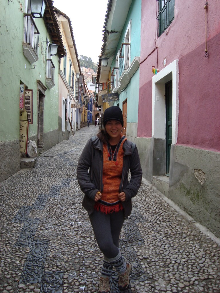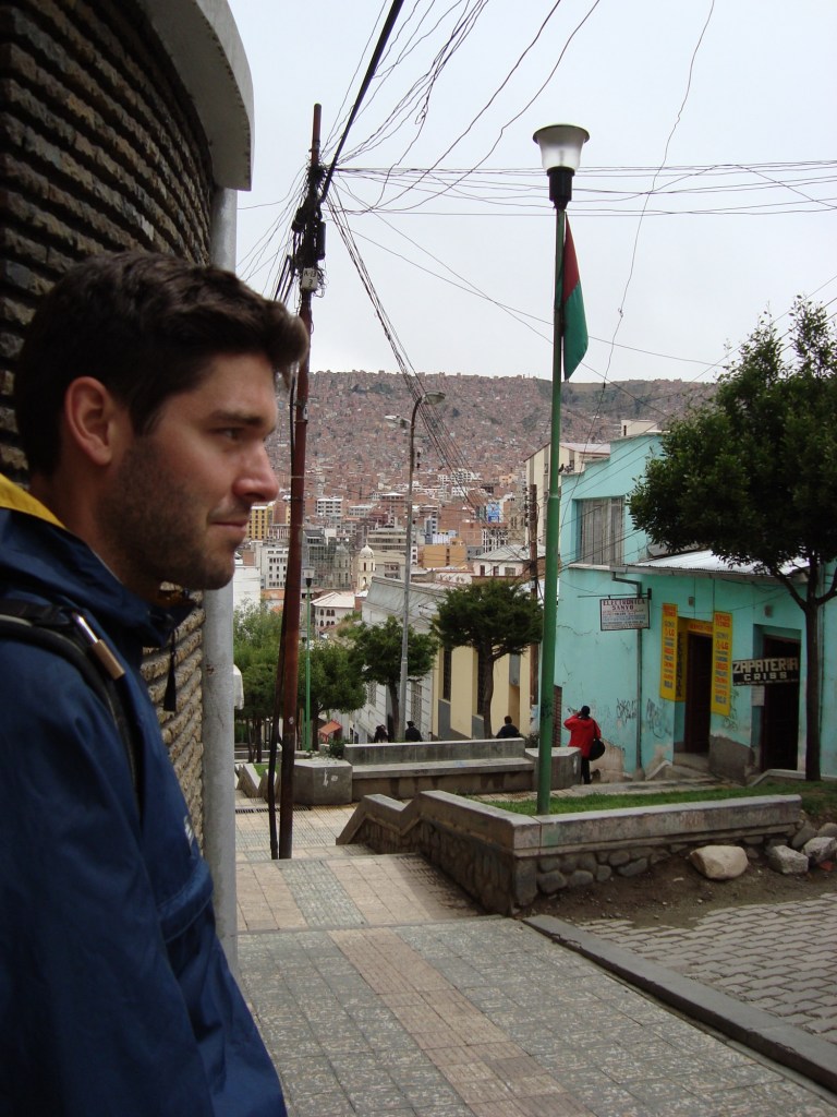 À l’approche de la Paz, par la route de El Alto*, on a subitement l’impression de voir la fenêtre de notre bus se transformer en hublot d’avion. À 500 mètres au dessus de la capitale la plus haute du monde, comme en vol plané, nous descendons rapidement dans le canyon au flanc tapissé de bâtiments couleur terracotta. La capitale est charmante, ses rues pavés à la manière inca bouillonnent de circulation automobile et piétonnière. Elle dégage l’atmosphère d’un grand village acceuillant plus qu’une cité surexploitée. Pour nous, il est temps d’ajouter quelques couches d’alpaca à notre garde-robe qui résiste difficilement au rigueur du climat bolivien. Nous nous laissons tenter par les attraits culinaires de la capitale: un « whooper » chez le roi du burger, un plateau de sushi accompagné d’un bon verre de blanc chilien abordable, un poulet tikka masala passable, une soupe thaï qui n’a que le nom de thaïlandais et une pizza new-yorkaise douteuse… suivi de fièvre et diahrrée. Oupss!!! finalement peut-être un peu plus douteuse que nous l’avions crû.