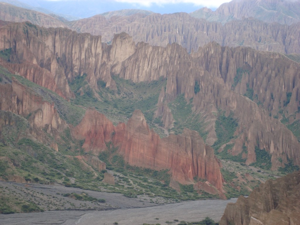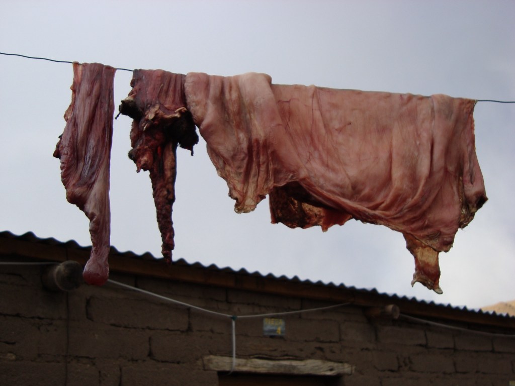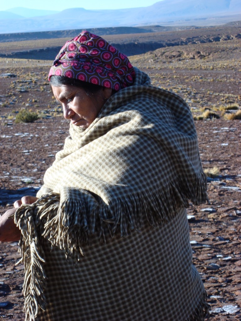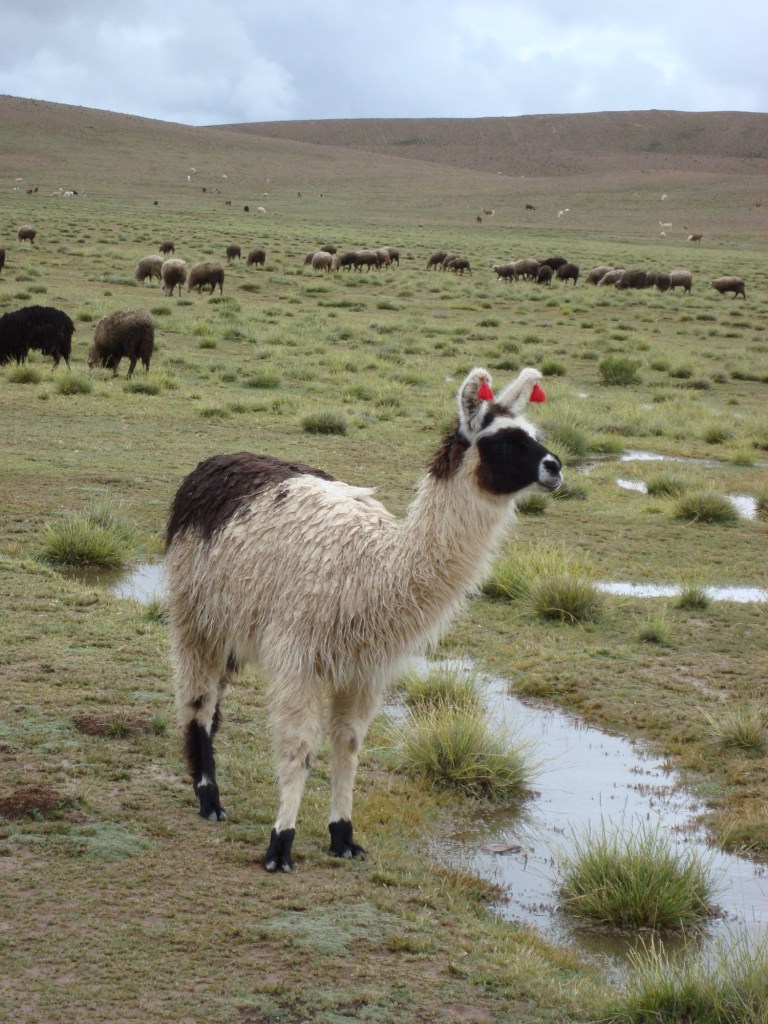 Déjà, durant les premiers kilomètres, les paysages sont spectaculaires. D’énormes parois de pierres rouges à la cime pointue, font l’objet de photos. Nous nous dirigeons tout au long de la journée vers notre premier logement à travers une route rocailleuse et sinueuse, une tempête de neige, plusieurs champs de lamas, des sommets enneigés et ce, à une altitude frôlant les 4 500 mètres. Nous arrivons dans notre modeste chambre constituée principalement de terre. L’endroit est glacial et humide, c’est à ce moment bien précis que nous sommes ravis d’avoir loué deux bolsa de dormir*! Après s’être régalés du bon repas chaud de mamá et suite à une courte observation du ciel, illuminé par la voie lactée, nous sautons tous dans nos lits respectifs et tentons d’oublier le froids qui nous submerge.