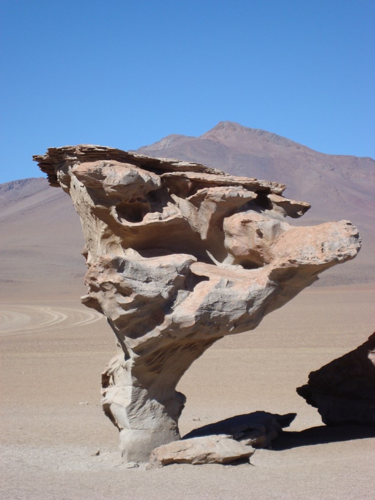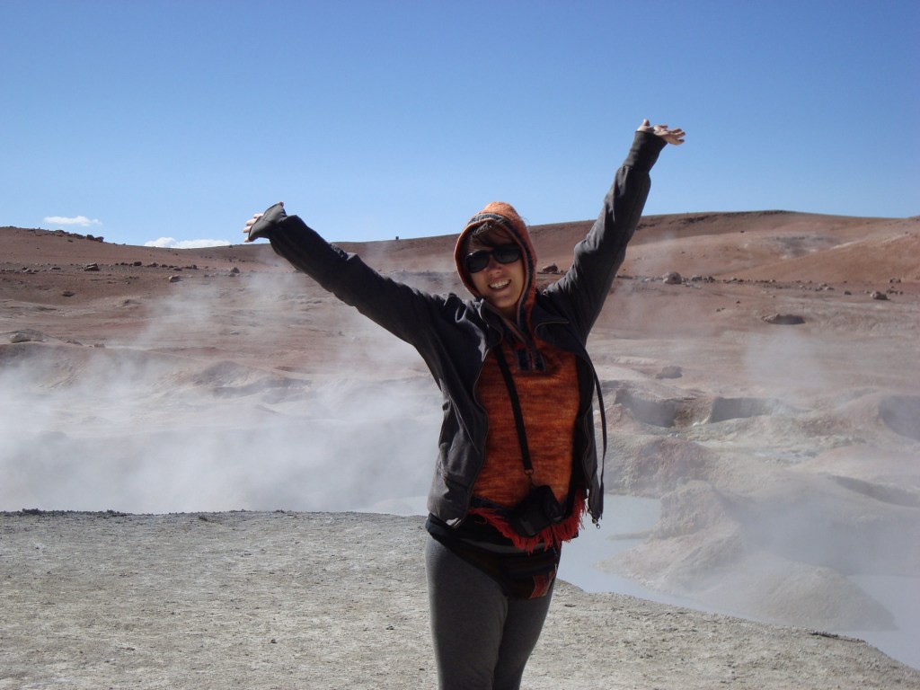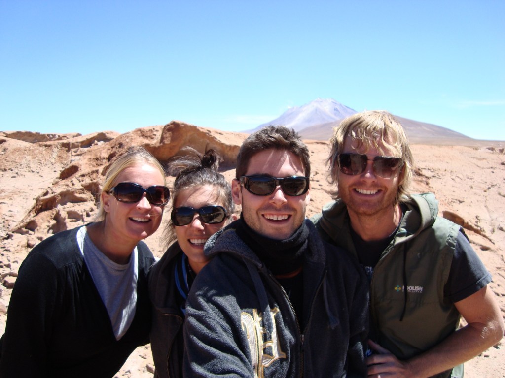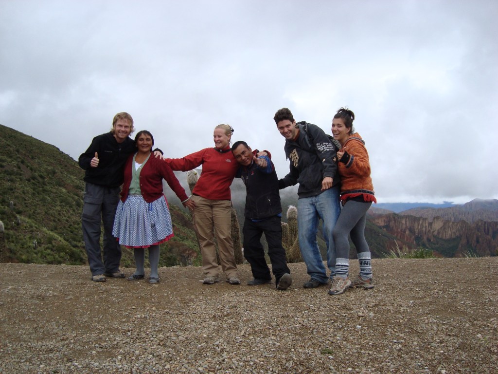8h30 am, fidèles au poste, nous rencontrons Jamie et Rachel, deux anglais fort symphatiques, qui se joignent à nous pour l’excursion. Nous rencontrons également William et sa mamá Thalia de son nom touristique, notre guide et notre cuisinière pour les quatres prochains jours dans un circuit au sud-ouest de la Bolivie. Nous prenons soin de bien attacher nos sacs à dos sur le toit du véhicule, qui sont devenus depuis plusieurs mois, toute notre vie, nous aidons mamá à insérer la tonne de nourriture à l’arrière de la jeep, pendant que William fait les dernières vérifications de routine sur la carosserie. Et c’est un grand départ!