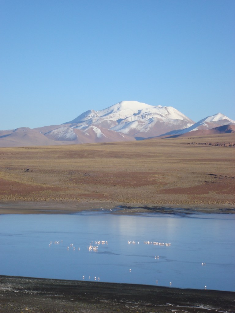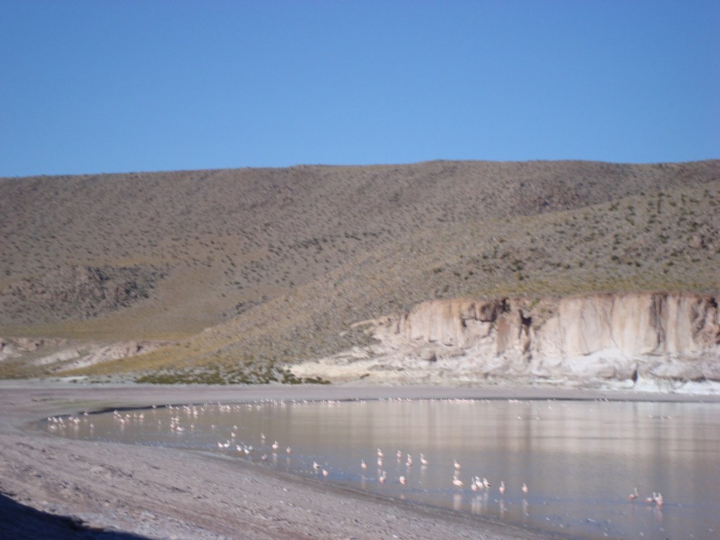 Il fait un temps magnifique dans cet univers froid et arride, où nous découvrons les quelques rares habitants du monde animal qui y survivent, tel les « flamingos », les vécunias et autres dont nous avons oublié le nom. Les lagunes se succèdent, mais la plus impressionnante est sans contredit la Laguna Verde. Elle est surplombée par l’imposant volcan Licancabur (5960 m) et est saturée principalement de soufre, de plomb et d’arsenic, lui procurant une couleur verte quasi irréelle!