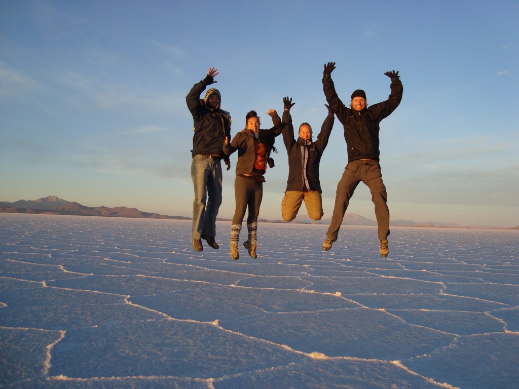 William nous fait faire toutes sortes d’acrobaties et de « steppettes ». Nos rires se perdent dans l’espace, c’est un moment d’intensité génial où les pensées s’envolent et où l’on vit profondémment le moment présent. Nous abusons de notre photographe du jour, William, jusqu’à son épuisement total, puis nous repartons vers ce qui seront les derniers milles de l’aventure. Un court passage à travers les montagnes de sel qui attendent le processus de transformation avant de se rendre dans nos cuisines pour une consommation quotidienne.