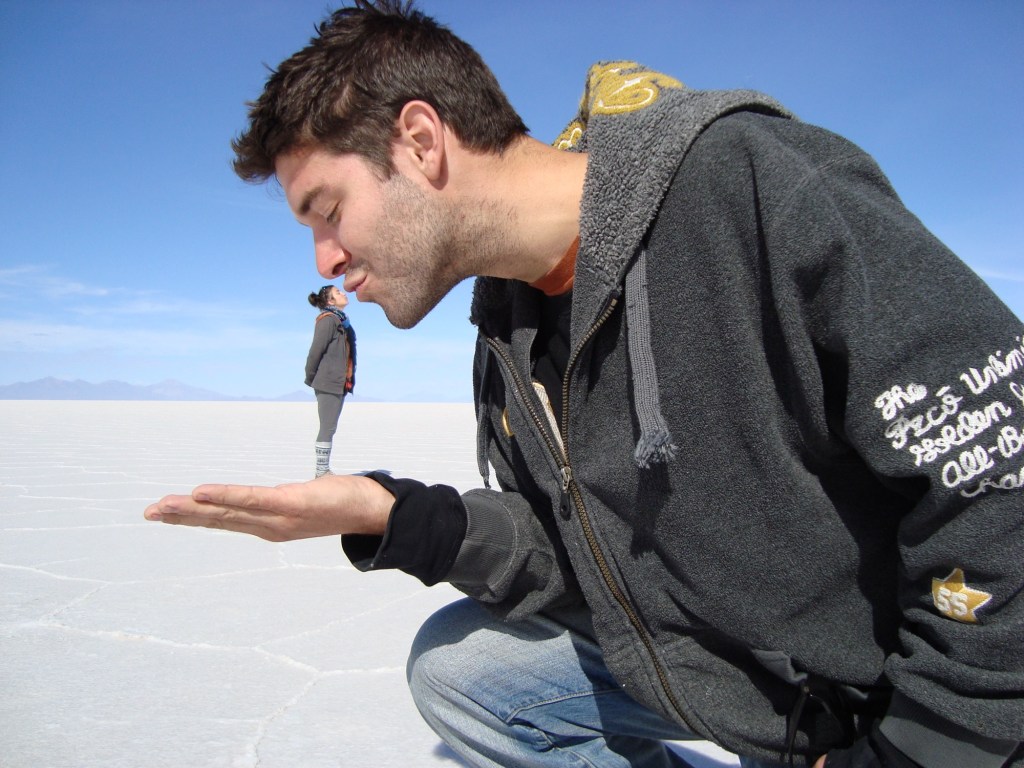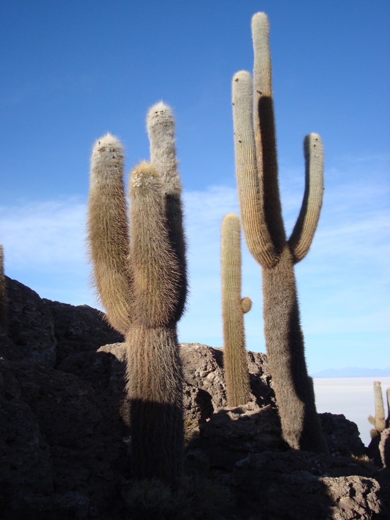 Nous reprenons nos esprits et se rendons sur l’une des 20 îles dispersées sur le vaste territoire blanc. La nature continue de nous surprendre, lorsque nous arrivons sur l’îlot aux multiples cactus géants. Nous marchons à travers ces gigantesques plantes de 15 mètres et sommes plus petits que jamais. Le sol, tant qu’à lui, est une énorme surface de corail mort; ici, il est facile de laisser aller son imagination et de se projeter plusieurs milliers d’années avant J-C, lorsque tout ce qui nous entoure était submergés d’eau douce, où il devait y avoir une grande biodiversité et où la vie devait grouiller dans chaque racoin. Aujourd’hui, c’est un grand espace vide et dépourvu de vie où seuls les humains y trouvent un intérêt: venir s’imprégner du mystère qui habite le plus grand désert naturel de sel de notre planète!!!