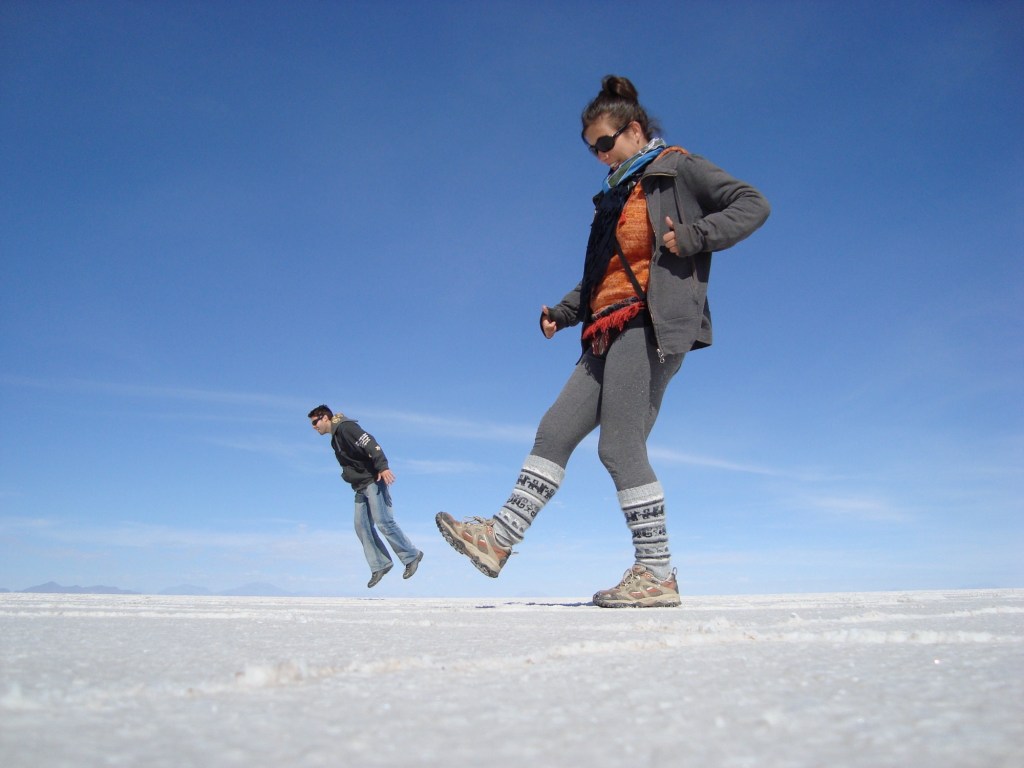 Dans un autre ordre d’idée, plûtot cocasse, sa blancheur et son infinité permet de réaliser des clichés amusants. Nous passons près de deux heures à se photographier, sous un ciel bleu et un soleil éblouissant.