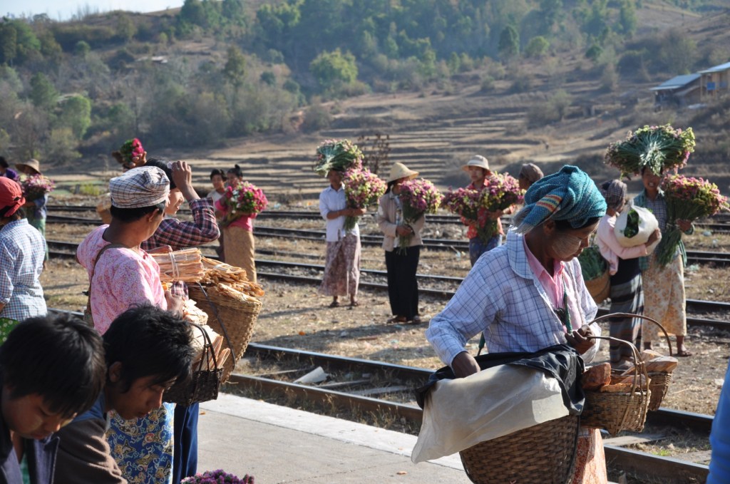 Un bon déjeuner et nous reprenons la route. Nous traversons les plantations de gingembres, de chilis, de pommes de terre et d’orangers. L’agriculture occupe, encore aujourd’hui, une place majeure dans l’économie du Myanmar. 70% de la population survit grâce à la culture de la terre… une statistique qui en dit, encore une fois, très long sur le développement du pays, sur une planète en pleine exode rural massive ou l’agriculture prend de moins en moins de place!