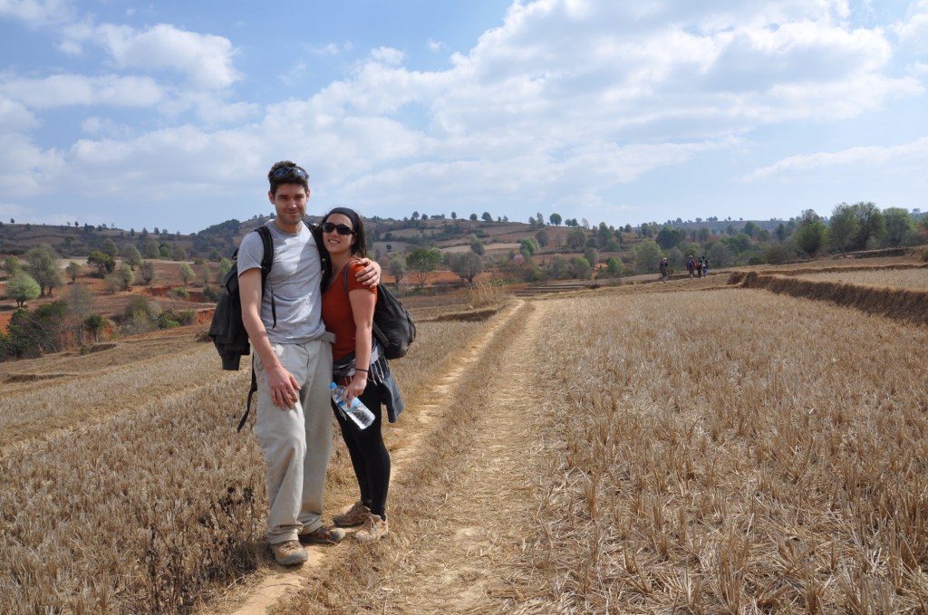 Impossible de choisir son agence ou même son guide, on nous arrête à la porte et on nous impose Jimmy, un grand birman musulman qui semble digne de confiance. Pour la somme de 9$ par jour chacun, nous nous laissons vendre ce trek de 3 jours et 2 nuits en direction du Lac Inle, nourriture et logement inclus. Nous sommes jumelés a 4 espagnols de Menorka, une ile voisine de Ibiza au large de l’Espagne. Ils s’avèreront être des compagnons en or!