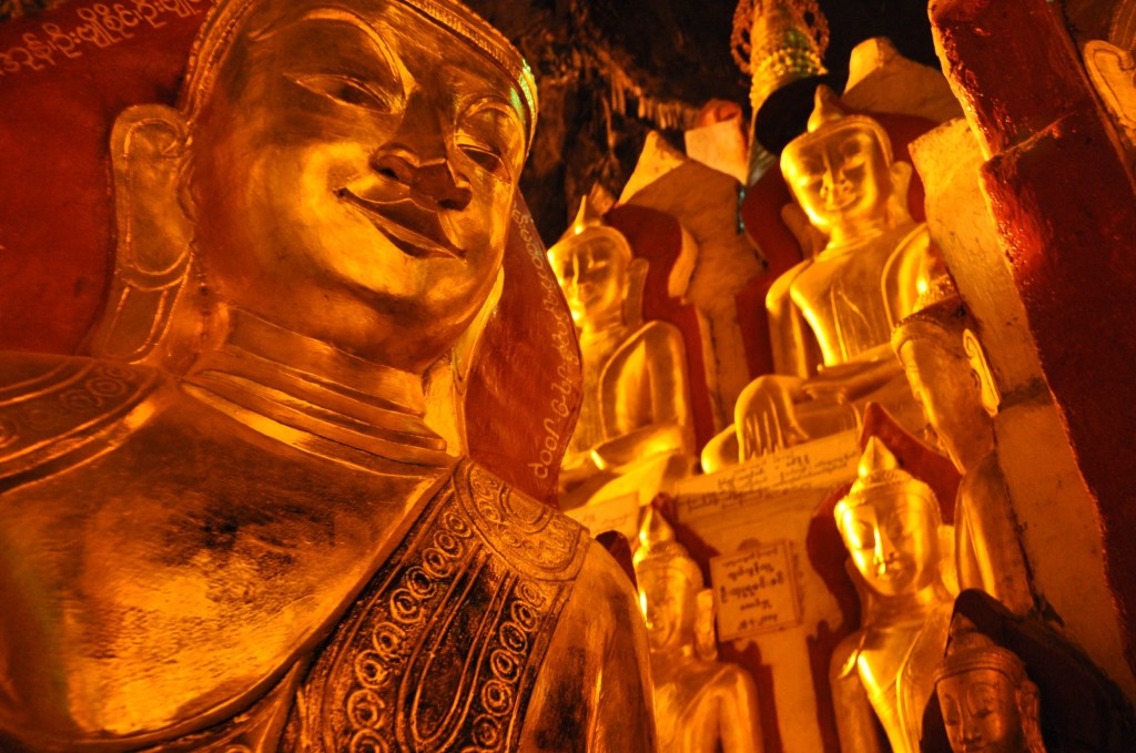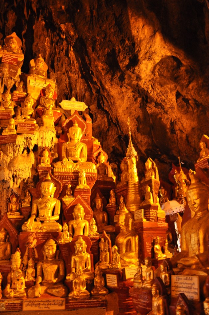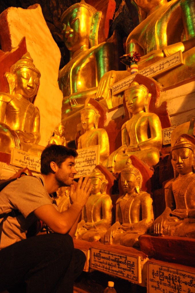 D’un commun accord, le matin suivant, nous partageons un taxi vers la grotte de Pindaya, un sanctuaire bouddhique à 3 heures du lac. Des milliers de Bouddhas remplissent la caverne humide en hommage, entre autres, aux êtres chers disparus. Certains d’entre-nous restent stupéfaits du lieu de culte tandis que d’autres, ayant l’impression d’avoir payer très cher pour cette visite, préfèrent sortir pour prendre le thé. Après avoir tourné quelques images vidéo et s’être imprégné suffisamment des lieux, la portion masculine des 2 Trotteurs descend rapidement la centaine de marches qui mènent aux toilettes rustiques pour évacuer la raison de ses crampes abdominales… hahahah!!! Les plaisirs du voyage!!! Ce soir là, empreints de nostalgie, nous disons au revoir à nos partenaires espagnols et leur promettons notre visite prochaine sur leur ile paradisiaque d’Espagne: Menorka. « C’est la vie! » comme dirait Gabriel avec son français plutôt cocasse.