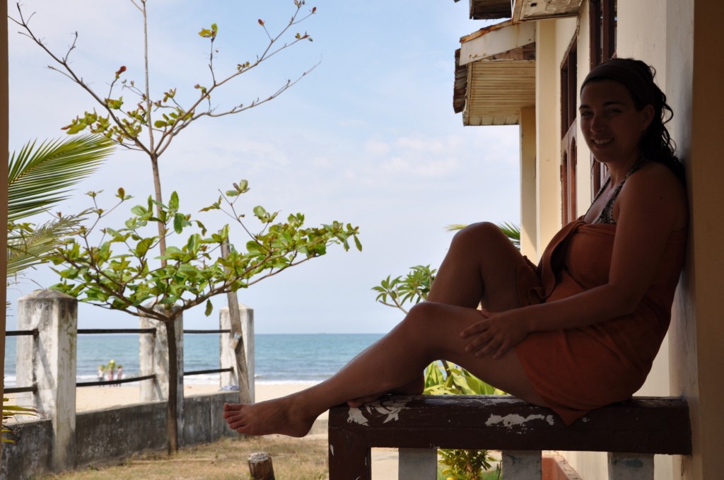 Au petit matin, on s’étale de tout notre long sur la plage, enduit de crème solaire. C’est le bonheur! La plage ici, mesure au minimum un bon kilomètre et on y compte moins de 10 touristes! Quelques vendeuses, plateau sur la tête, vendent de belles brochettes de poissons entiers grilles et de crevettes assaisonnées. Quelques enfants vendent au cout de 0.50$ de jolis chapeaux tresses en feuilles de palmiers (nous procurant juste assez d’ombre pour résister à l’ardeur du soleil)… Sinon, c’est le calme plat. Des dizaines de mètres de plage pour nous seuls, c’est à peine croyable.