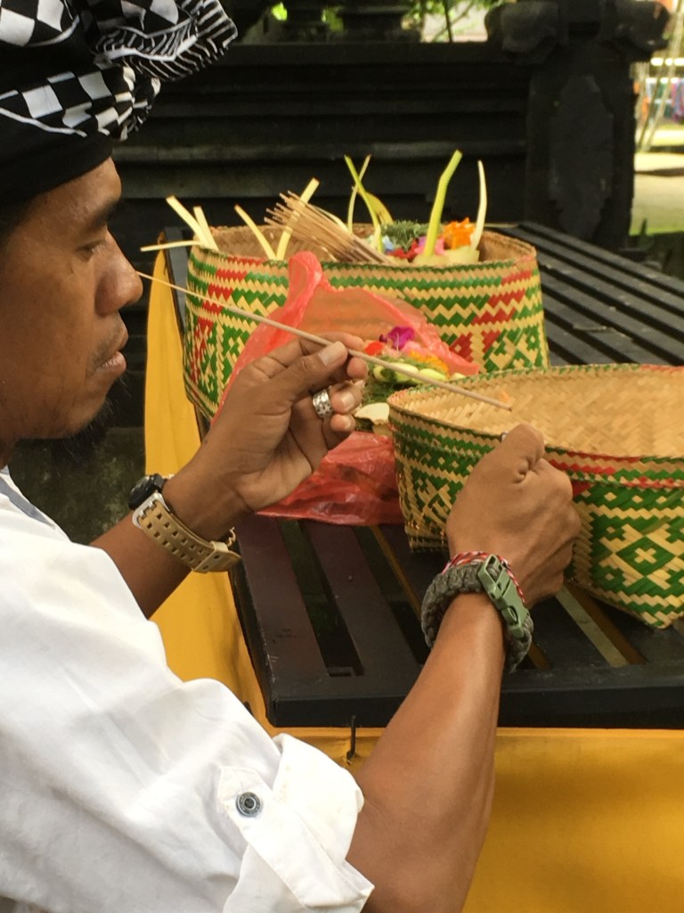 Bali c’est également, ou plutôt principalement, la famille. On privilégie d’abord la communauté à l’individu, car ce dernier dépend complètement de celle-ci. Chaque porche, nous entraine au cœur d’un petit village familial, ou tous travaillent sans relâche. Entretien, construction, récolte, cuisine… Un réseau parfaitement équilibre. L’équilibre!!! Pour les balinais, tout est question d’équilibre, ils en sont d’ailleurs les maitres planétaires, selon plusieurs. Sans famille, l’équilibre est impossible d’après la culture balinaise. Il est essentiel de savoir d’où l’on vient, d’où l’on provient et c’est principalement pour cette raison qu’il existe seulement 4 noms sur l’ile (indépendamment du sexe) désignant ainsi son rang au sein de la famille. Wayan (signifiant premier enfant), Made (2ieme enfant), Nyoman (3ieme enfant) et Ketut (4ieme enfant). Plus que 4 enfants? On recommence le processus… Étrange, non?