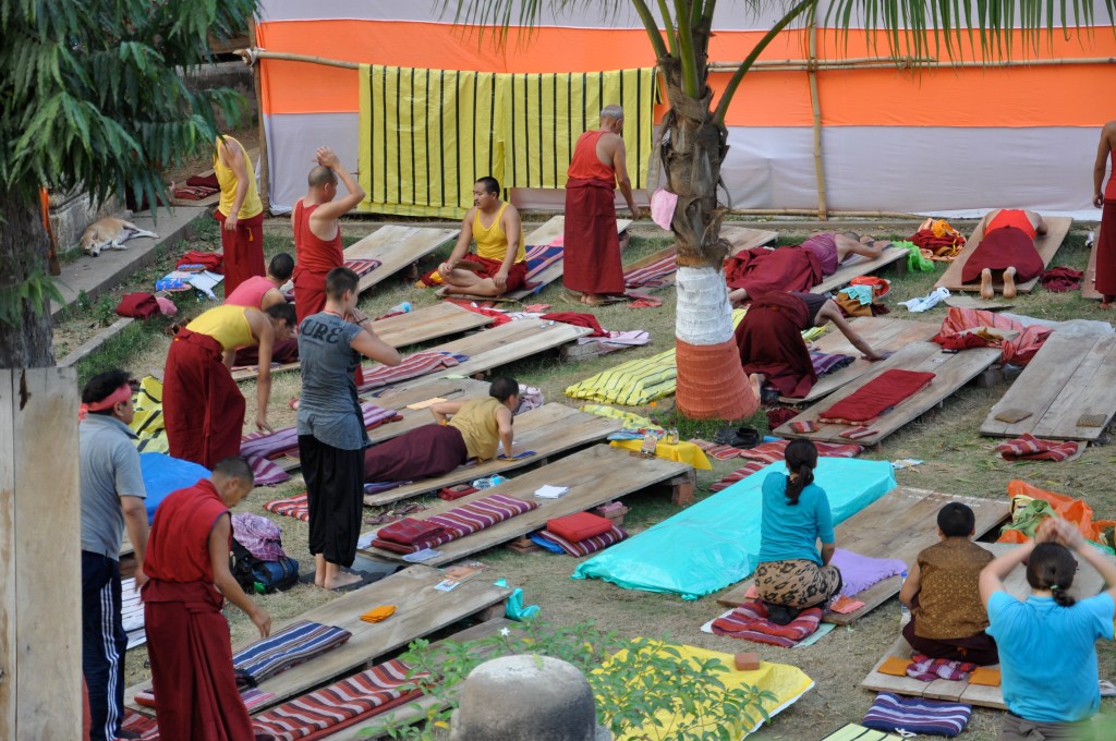 En ce sens, elle est souvent décrite comme une philosophie de vie plutôt qu’une religion. Elle encourage les valeurs vertueuses tel que la compassion et l’altruisme. En résumé, le but ultime est de comprendre et de maitriser son esprit. La méditation est au centre de la pratique bouddhiste permettant à l’adepte de se fixer dans le moment présent, de contrôler ses peurs, ses envies, ses angoisses, etc… Elle permet de rester serein devant les épreuves de la vie et d’accepter le caractère changeant de toute chose. Comme nous explique un moine rencontré près du temple Mahabodhi, lors de notre passage: c’est la nature des choses! Rien ne sert de s’inquiéter du pire et d’anticiper le futur, après la jeunesse vient la vieillesse, après la nuit vient le jour, après l’hiver vient le printemps et après la vie vient la mort.