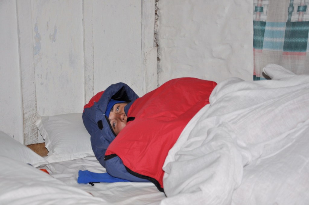 Les gens qui nous hébergent sur le chemin sont plus sympathiques les uns, que les autres. Nos quelques leçons de « bahasa nepali » nous attirent beaucoup de merveilleux moments avec les locaux. Les népalais sont extrêmement heureux de nous entendre baragouiner quelques phrases dans leur langue. Le manège amusant, nous permet en prime quelques rabais sur la nourriture et le logement. De plus, nous avons l’avantage de la basse saison, nous dormons presque seul dans les « lodges » ce qui nous amène un contact privilégié avec nos hôtes. Nous apprenons quelques airs typiquement népalais que nous fredonnons, le matin venu, en mettant un pied devant l’autre sur les sentiers interminables du parc. Loin de la pollution lumineuse, les soirées glaciales sont réchauffées par la vue de milliards d’étoiles qui parsèment le ciel. Comme la coutume le prescrit, lorsque nous apercevons une étoile filante, nous fermons les yeux et faisons un vœux: celui d’avoir la chance de revenir apprécier, le plus tôt possible, la tranquillité et l’énergie qui émanent de cet endroit unique, surnommé à juste titre: le toit du monde!