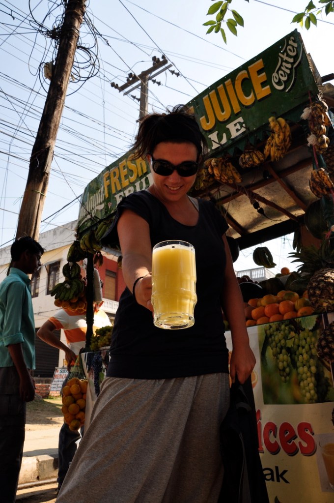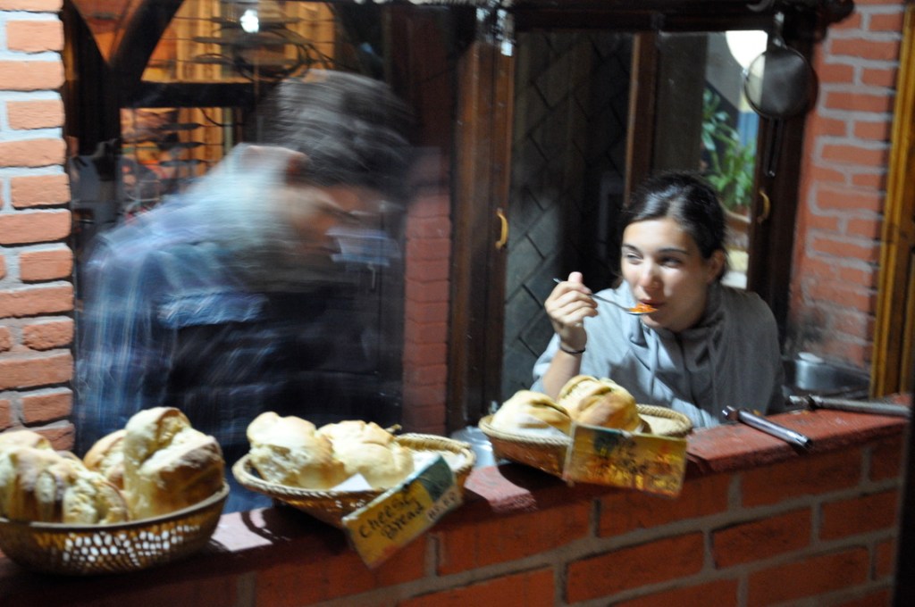 Installés dans nos nouveaux quartiers, nous percevons Pokhara sous un nouveau jour! Nous découvrons tous les jours un peu plus de charmes à la cité. Le toit ensoleillé pour la pratique quotidienne de notre yoga avec ces énergétiques montagnes en arrière-plan! Des ballades autour de l’étincelant lac Phewa. Nous prenons quelques leçon de népalais que nous pratiquons avec une gentille famille qui, tous les matins nous presse de bons grands verres de jus d’orange frais pour une poignée de rouppies! Nous dénichons 2 ou 3 restos simples à prix abordable et qui n’ajoutent pas cette surtaxe pour touristes! Nous cuisinons dans la sympathique petite cuisine du « Peace Eye guesthouse »! Nous remplissons le ventre de plusieurs voyageurs tout en remplissant à pleine capacité l’atmosphérique petit bistro de notre cher ami Chiran. Les belles rencontres abondent, de belles amitiés se tissent. Cet endroit a définitivement un petit, je ne sais quoi, qui attire les bonnes énergies, l’ouverture d’esprit et la bonté humaine.