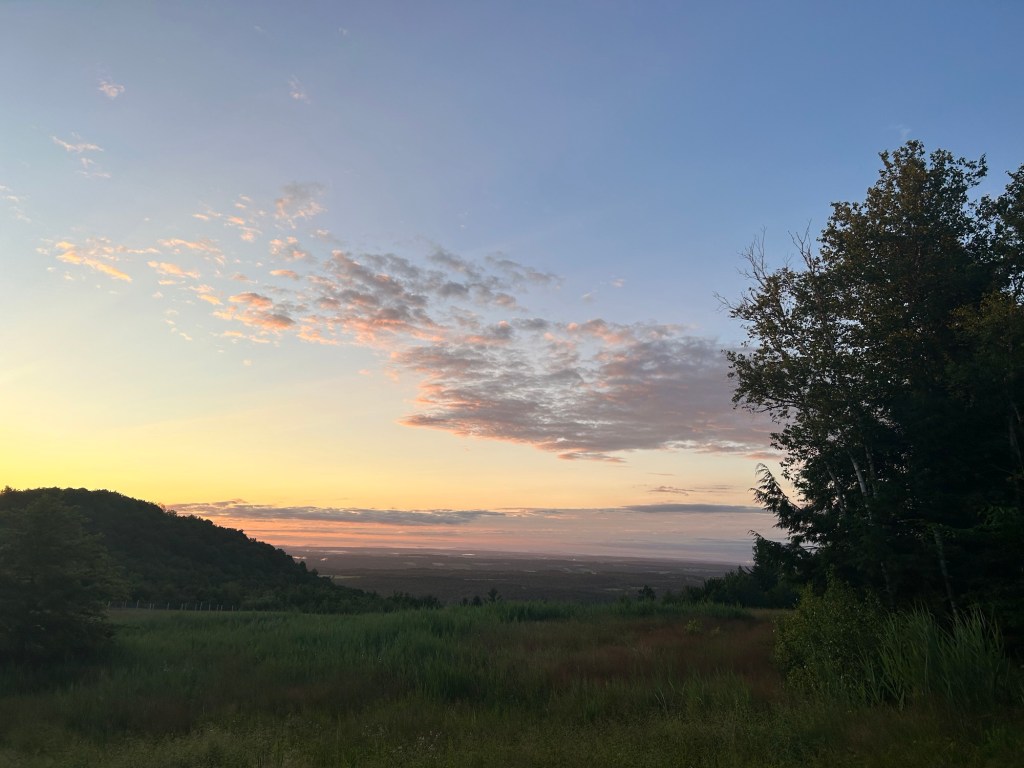 Peu de photo et d’arrêts sur le chemin du retour. Cette route est idéale pour revenir rapidement à la maison! Un lever de soleil magnifique, des petits vallons, des odeurs de fermes et peu de circulation sur les routes. Moins touristique que le chemin de l’allée au sud de la 10 mais encore plusieurs possibilités de beaux arrêts sur la route entre autre le Parc Daniel Johnson a Granby et le mont Orford. On passe dans une région de verger près de St-Césaire entre Granby et Chambly… la célèbre région de Rougemont s’y trouve.