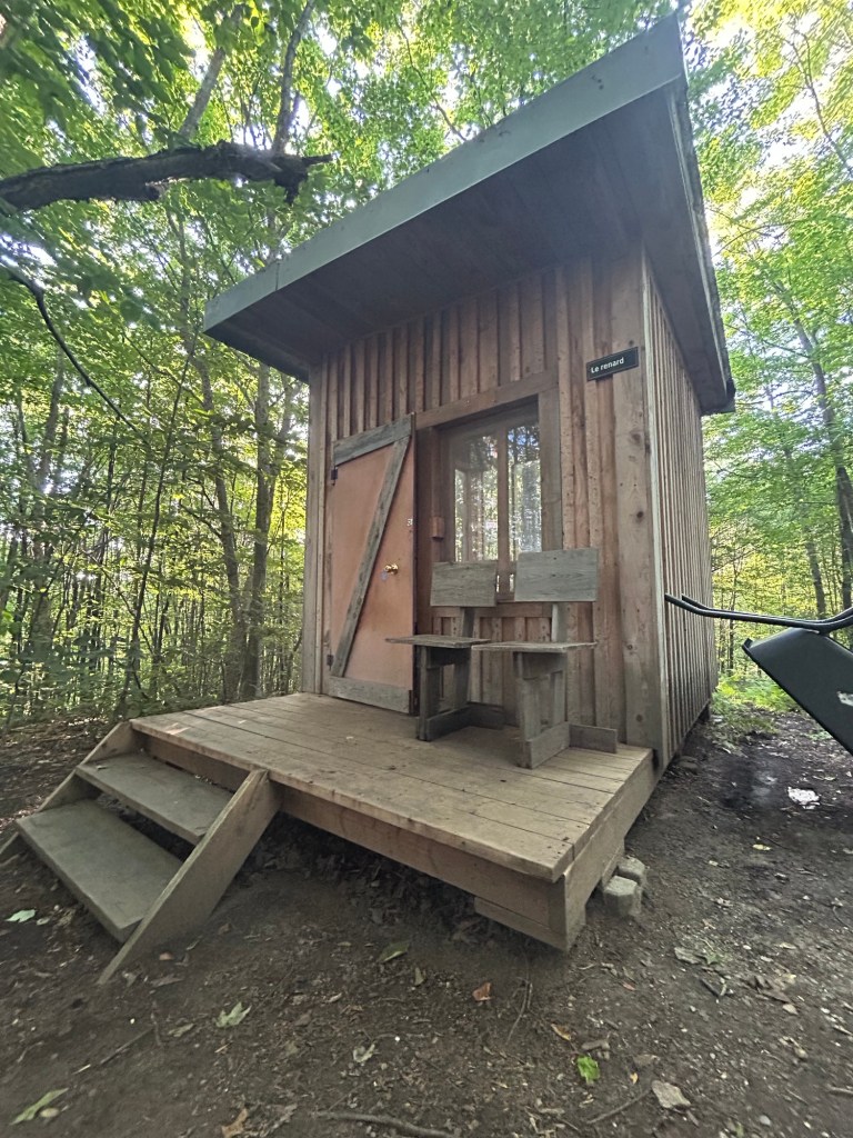 J’ai voyagé très léger au niveau vêtement et accessoires mais aussi au niveau nourriture: ramen, thé, noix, chocolatines. J’ai réservé une cabane rustique/glamping à la station Chêne rouge. Ma cabane c’était une des 3 essentielles… elle portait le nom de l’animal si rusé: le renard! Le Club House offre les bases: glaces, eau chaude, café, bloc sanitaire, piscine, espaces communs de détente et bien plus… je suis ravi de mon choix!