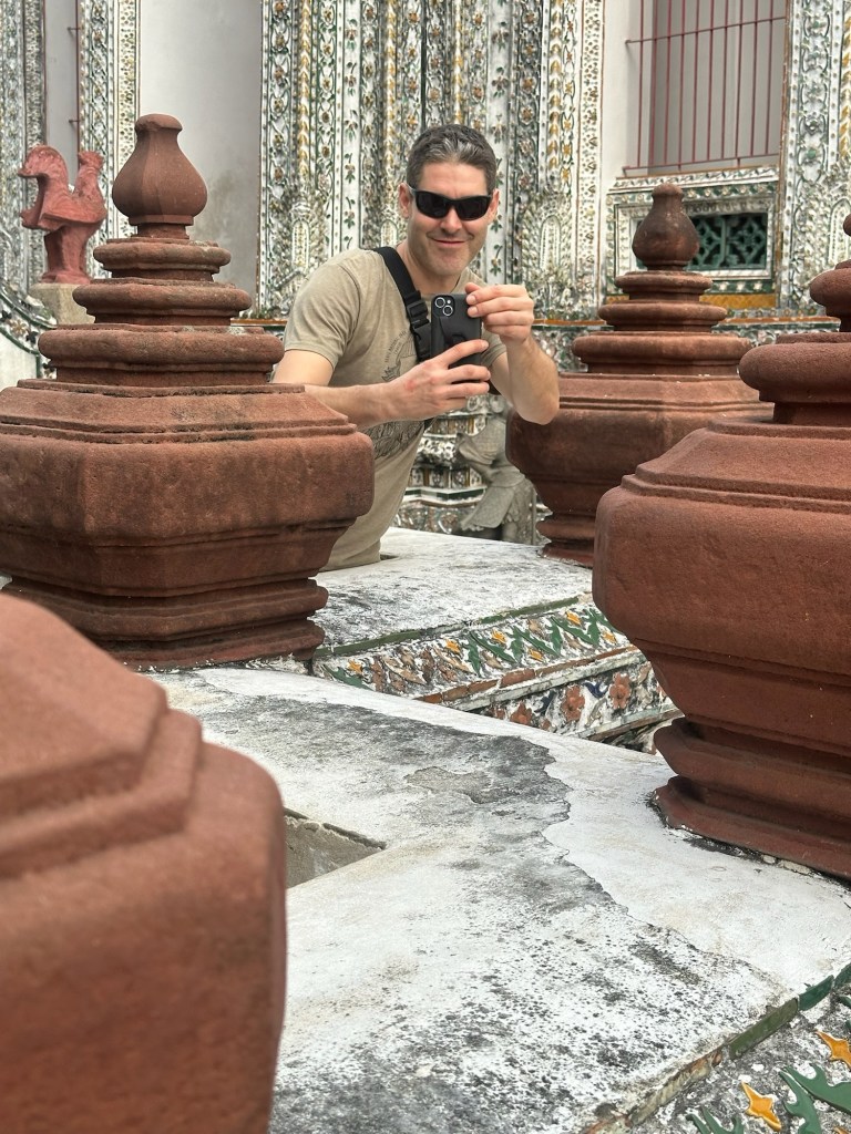 Le lendemain, nous partons à la découverte du Wat Arun à bord d’un des nombreux bateau-taxi qui navigue le Chao Praya du Nord au Sud 365 jours par année. Cette fois-ci, nous arpentons directement le site, le temple de l’aube nous offre une visite méditative par excellence.