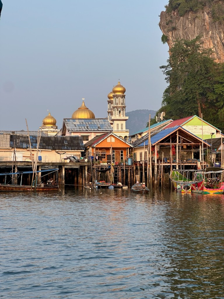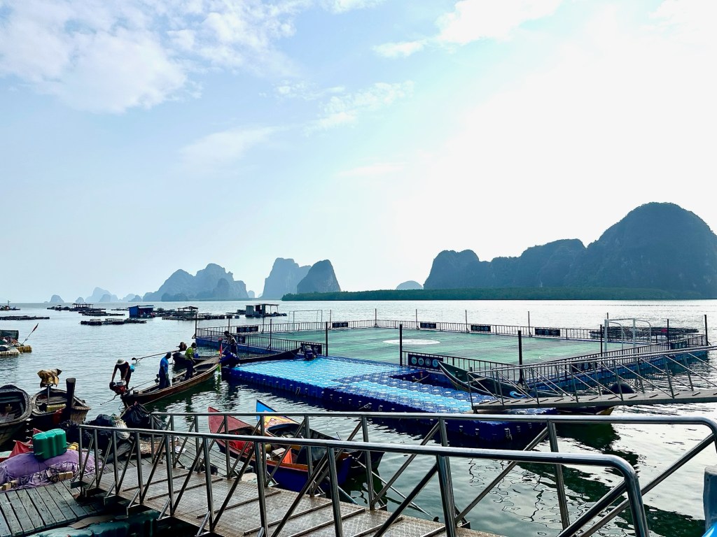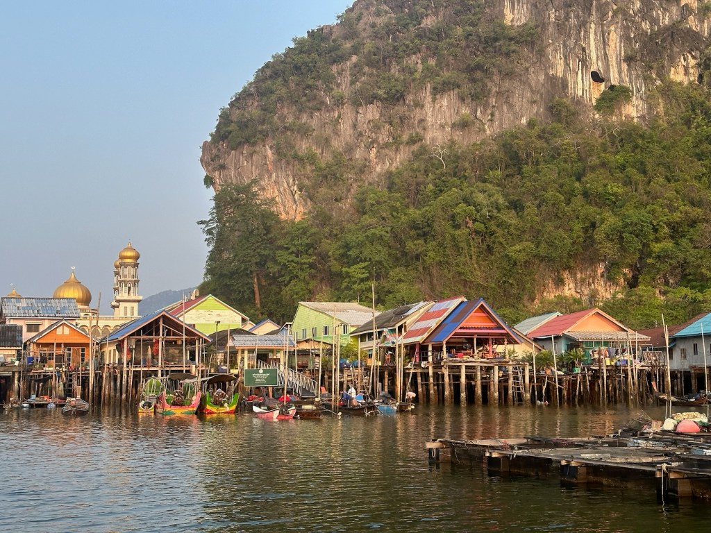 Notre dernière destination dans la baie de Phang Nga, c’est le surprenant village flottant de 400 mètres, abrité par un immense rocher calcaire et qui se situe à mi-chemin entre Phuket et Krabi.
