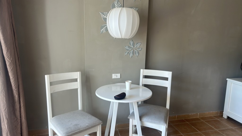 Nos attentes par rapport à la qualité de l’hébergement était très très bas avant le départ étant donné ce que plusieurs personnes nous avaient dit avant le départ. Nous sommes donc agréablement surpris de découvrir une chambre propre certes un peu abîmé, mais avec un air climatisée respectable et absolument nécessaire en ce chaud et humide début de septembre. L’eau froide, l’eau chaude, une bouteille d’eau potable par jour avec un frigo pour la garder froide et une jolie terrasse.